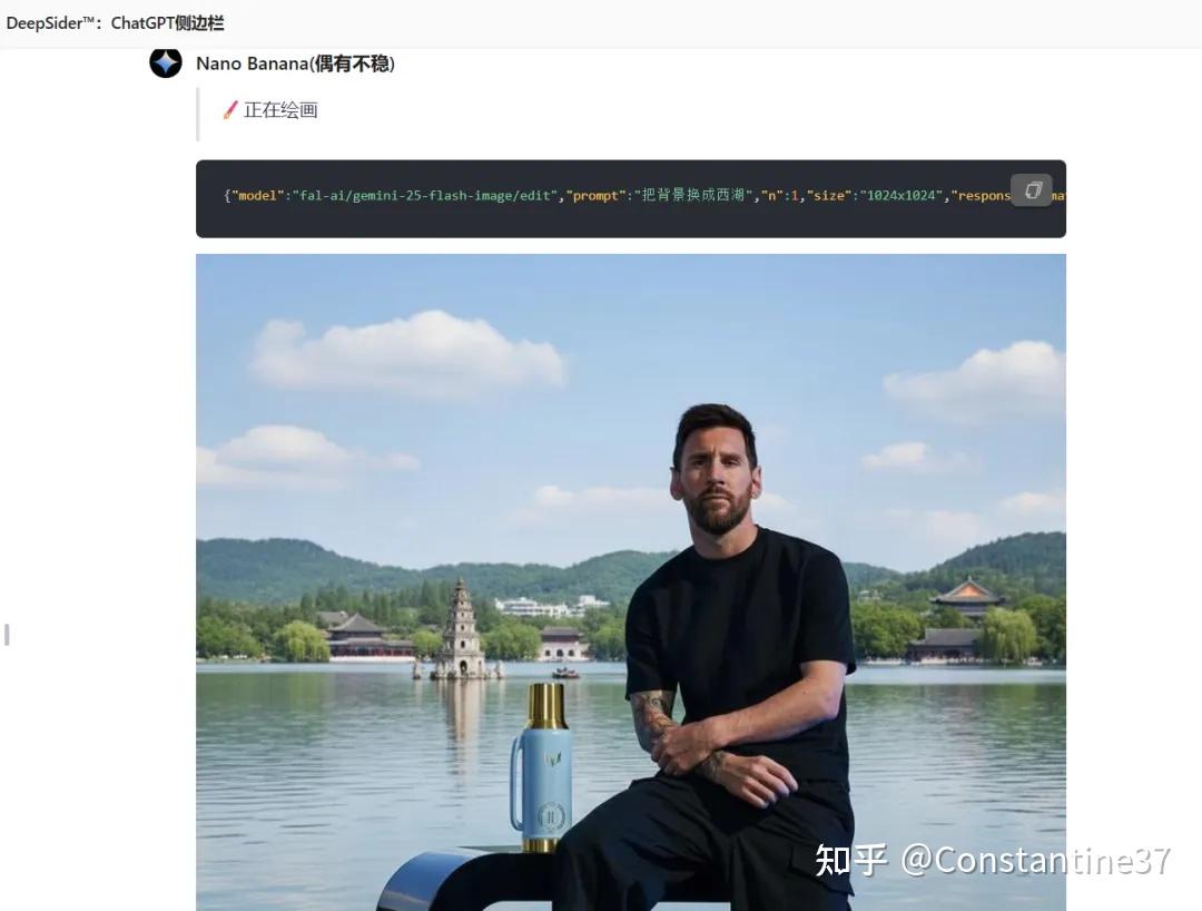 比如上传一张梅西的个人照片,让它把背景替换到国内的景点。