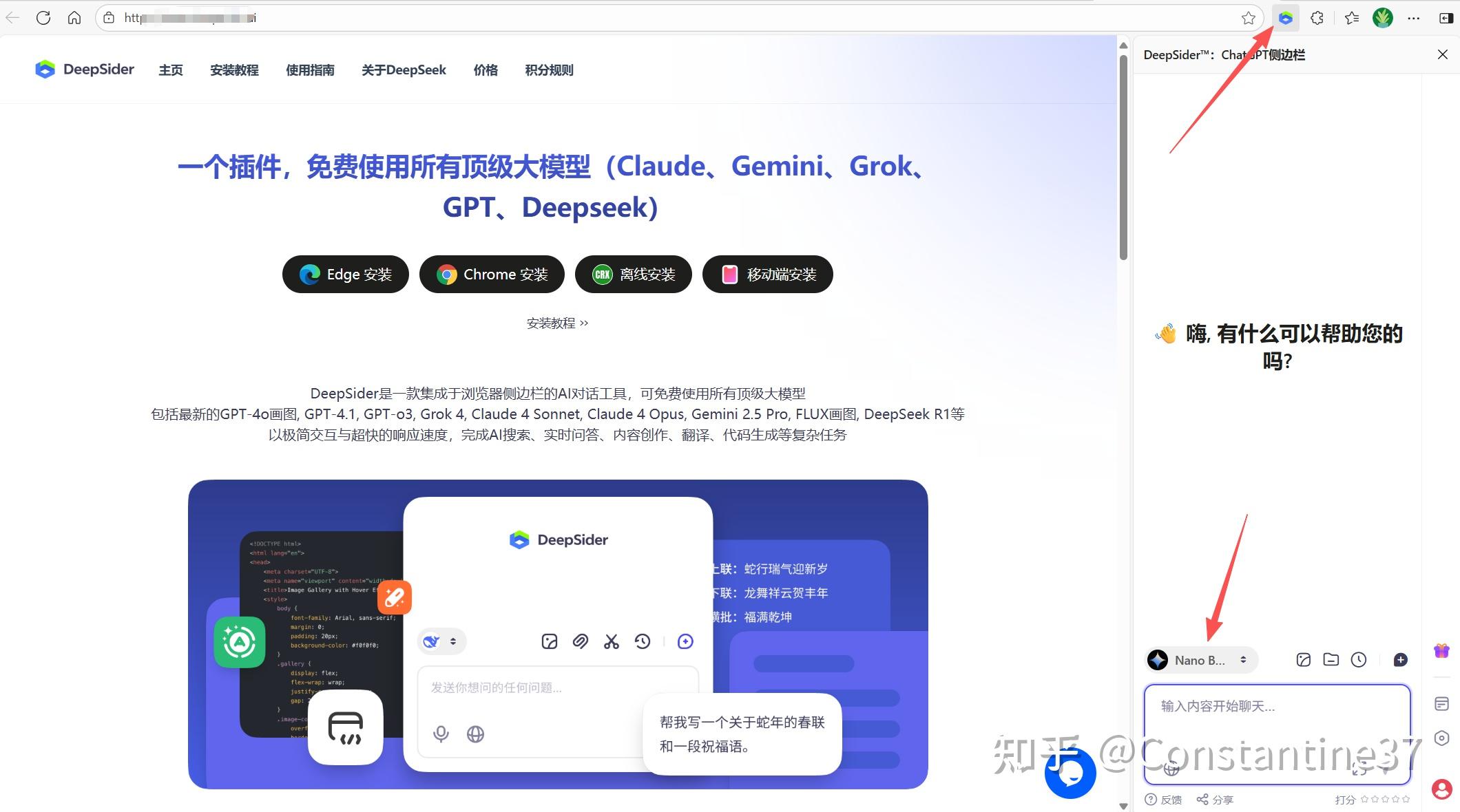 我这里使用的AI工具是浏览器插件DeepSider,可以免费切换使用Grok4、NanoBanana、GPT5、Claude4.0等模型。