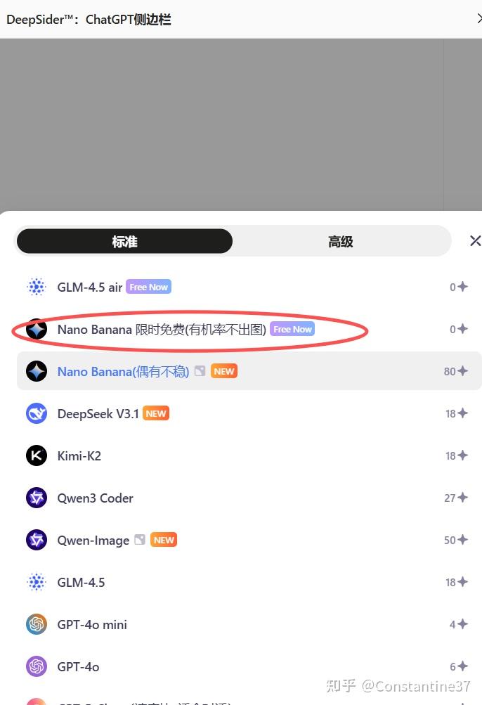 DeepSider中有两条Nano Banana的线路,其中一条是限时免费,可以不限次数生成。