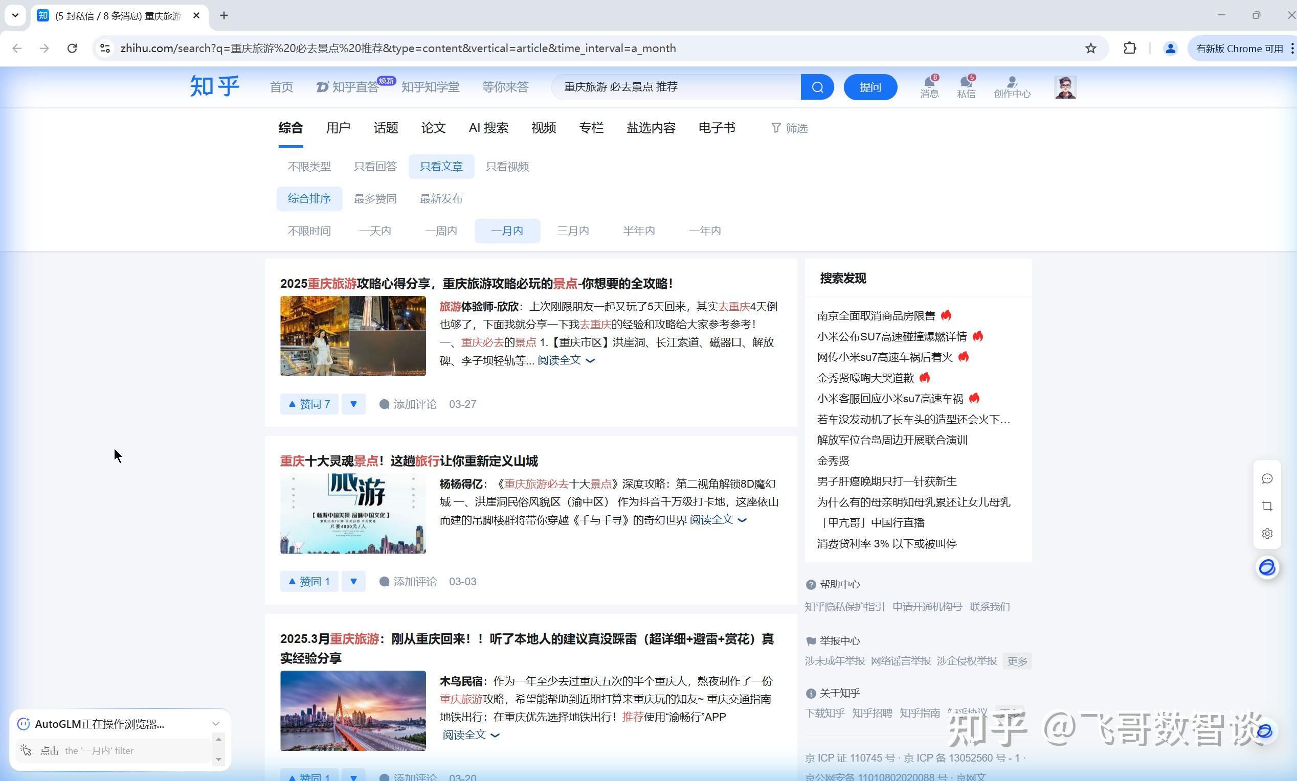 如果需要访问的网站已经登录,AutoGLM沉思 直接可以进行搜索。