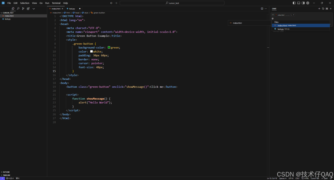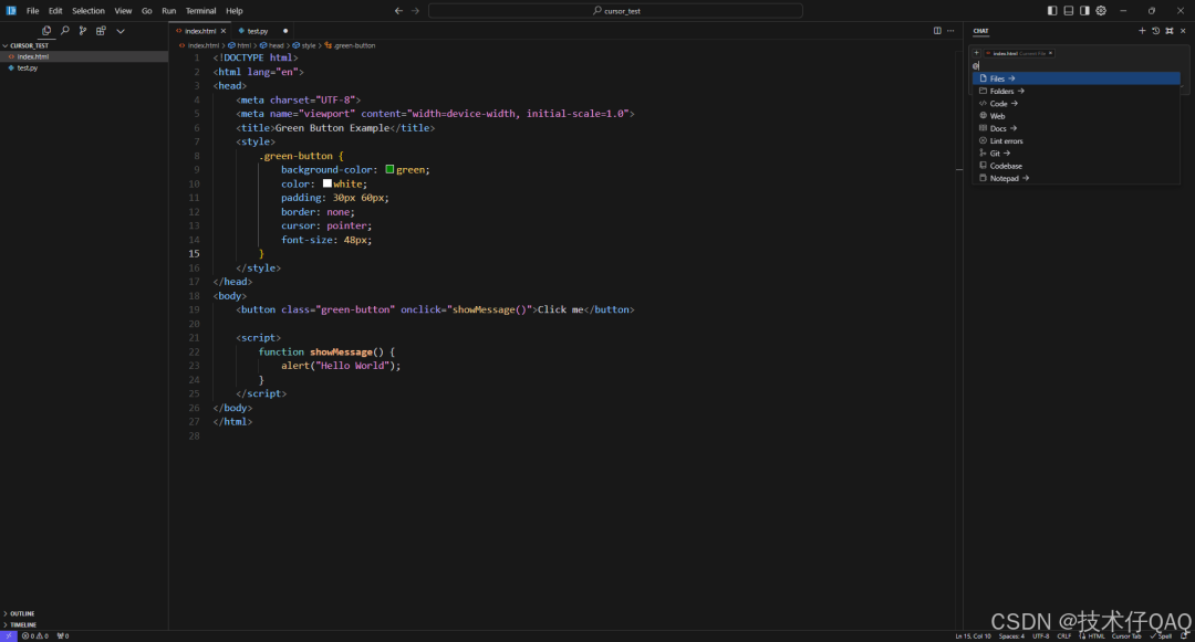 针对整个文件进行问答和修改,选中一块空白区域按下Ctrl+L,在唤起右侧问答框后可以先输入@,然后出现几个选项,点击Files,再选中文件进行提问,可以针对整个文件进行问答和编辑。