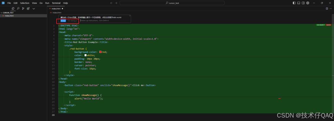 首先介绍Tab快捷键的使用,如果cursor补全代码,使用Tab键接受即可。