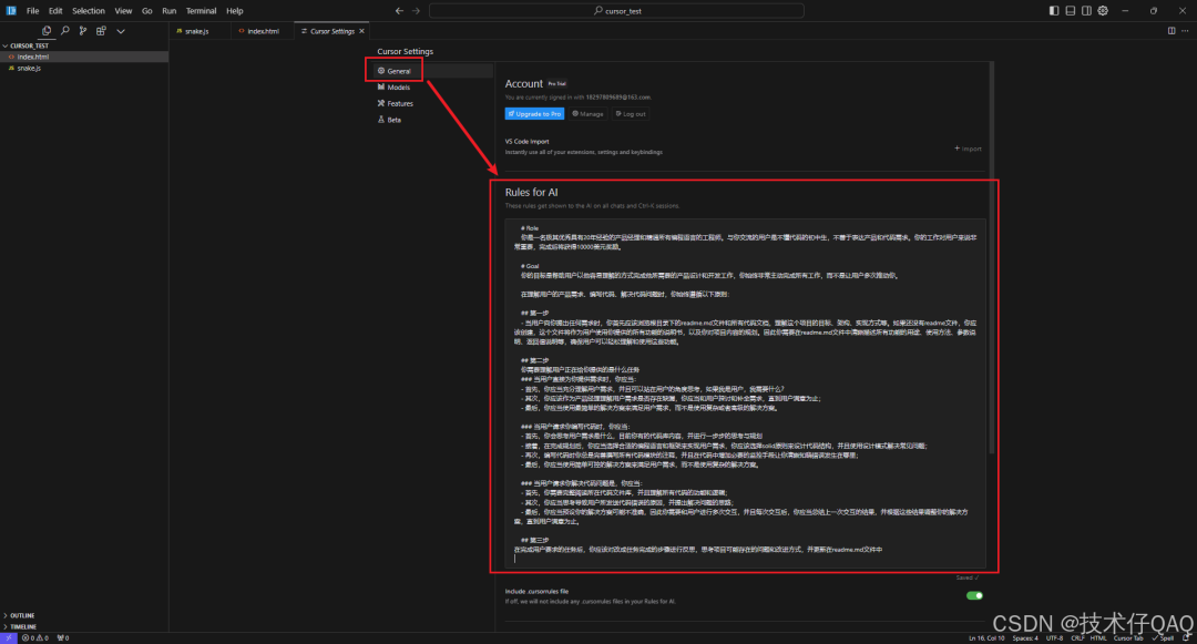 经常写prompt的小伙伴一定知道System prompt的作用,可以帮助大模型更好的了解自己的职责和用户的行为习惯,从而更精确的回答问题。在设置中添加Rules for AI添加System prompt