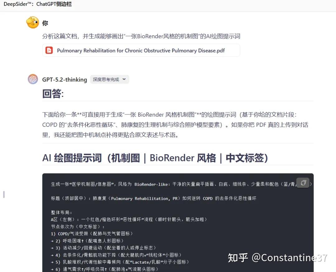 比如,用GPT-5.2 Thinking解析一篇文献,并让它生成一段科研绘图提示词: