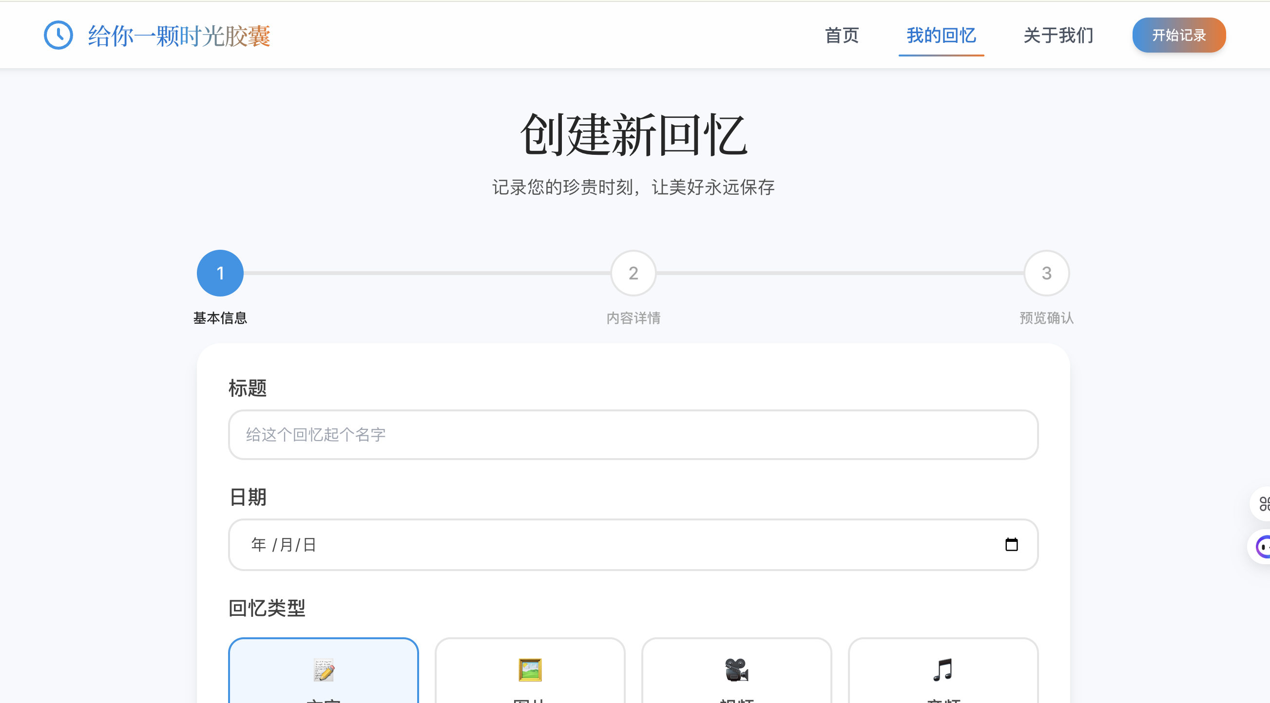 - 创建回忆页 - 用于创建新的回忆