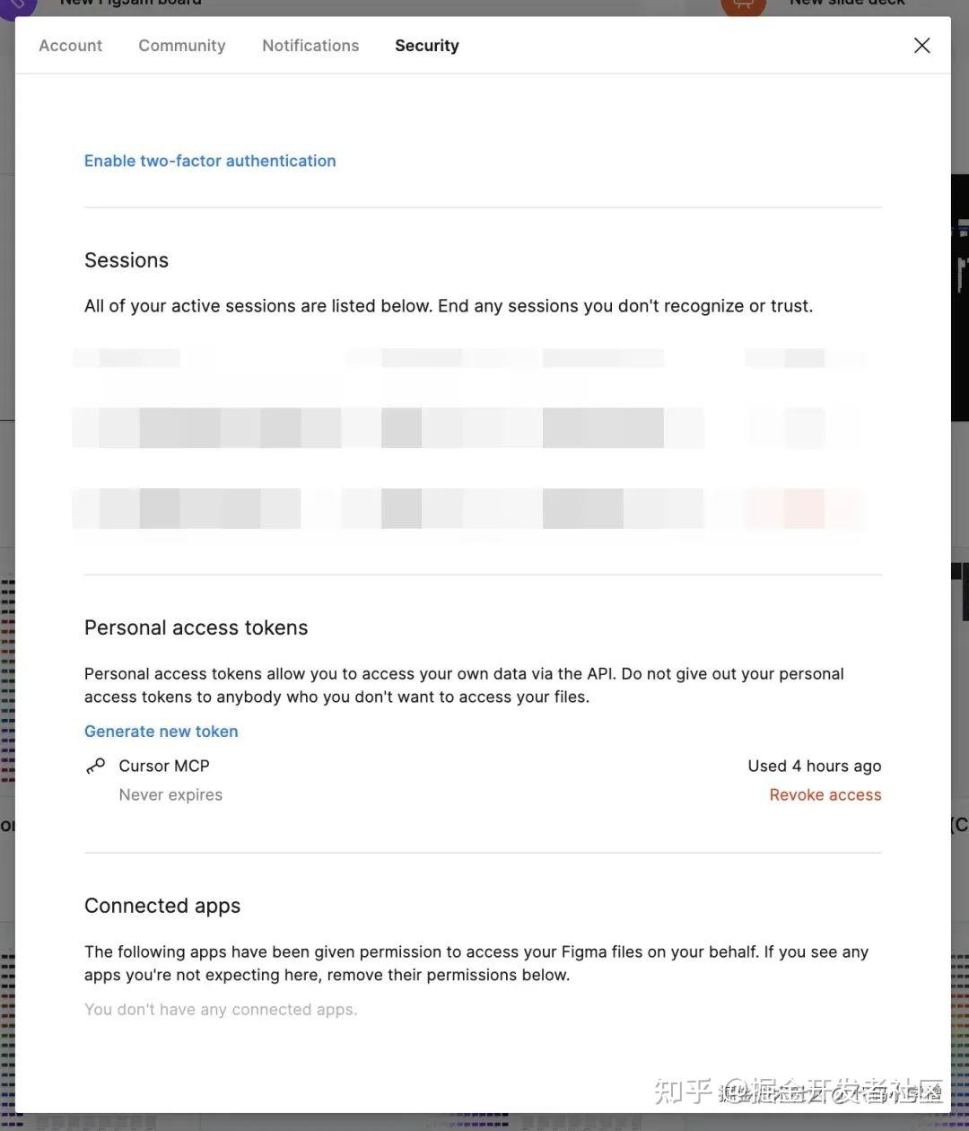 在 Figma 点击头像然后进入 Setting 先创建一个 Figma api-key。