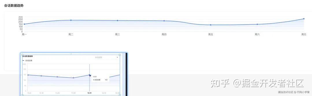 import ReactECharts from ‘echarts-for-react’; export default function LineChart() { const data = [ { date: ‘周一’, value: 150 }, { date: ‘周二’, value: 230 }, { date: ‘周三’, value: 224 }, { date: ‘周四’, value: 218 }, { date: ‘周五’, value: 135 }, { date: ‘周六’, value: 147 }, { date: ‘周日’, value: 260 }, ]; const option = { tooltip: { trigger: ‘axis’, backgroundColor: ‘rgba(255, 255, 255, 0.9)’, borderWidth: 0, textStyle: { color: ‘#333’, }, }, grid: { left: ‘1%’, right: ‘1%’, bottom: ‘1%’, top: ‘3%’, containLabel: true, }, xAxis: { type: ‘category’ as const, boundaryGap: false, data: data.map((item) => item.date), axisLine: { lineStyle: { color: ‘#E5E7EB’, }, }, axisLabel: { color: ‘#6B7280’, }, }, yAxis: { type: ‘value’ as const, axisLine: { show: false, }, axisTick: { show: false, }, splitLine: { lineStyle: { color: ‘#E5E7EB’, type: ‘dashed’, }, }, axisLabel: { color: ‘#6B7280’, }, }, series: [ { name: ‘客服消息量’, type: ‘line’, smooth: true, data: data.map((item) => item.value), symbol: ‘circle’, symbolSize: 6, itemStyle: { color: ‘#1677FF’, }, lineStyle: { width: 2, color: ‘#1677FF’, }, areaStyle: { color: { type: ‘linear’, x: 0, y: 0, x2: 0, y2: 1, colorStops: [ { offset: 0, color: ‘rgba(22, 119, 255, 0.2)’, }, { offset: 1, color: ‘rgba(22, 119, 255, 0)’, }, ], }, }, }, ], }; return (