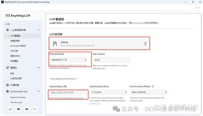 AnythingLLM 需要连接到本地运行的 DeepSeek 7B 模型: