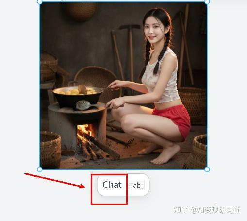 有了图片后,点击图片,会有一个 chat 按钮,点击后 会有对话框出来,你可以通过对话让 AI 继续改这张图