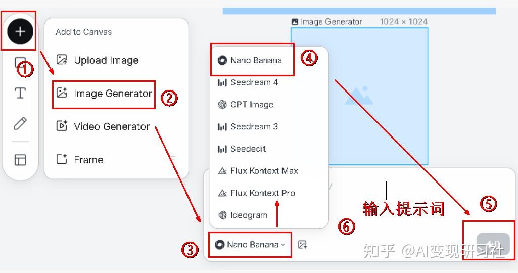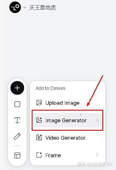 进入这个项目,点击画布左侧的“+”,选取图像生成器“Image Generator”,可以选取各类图像模型