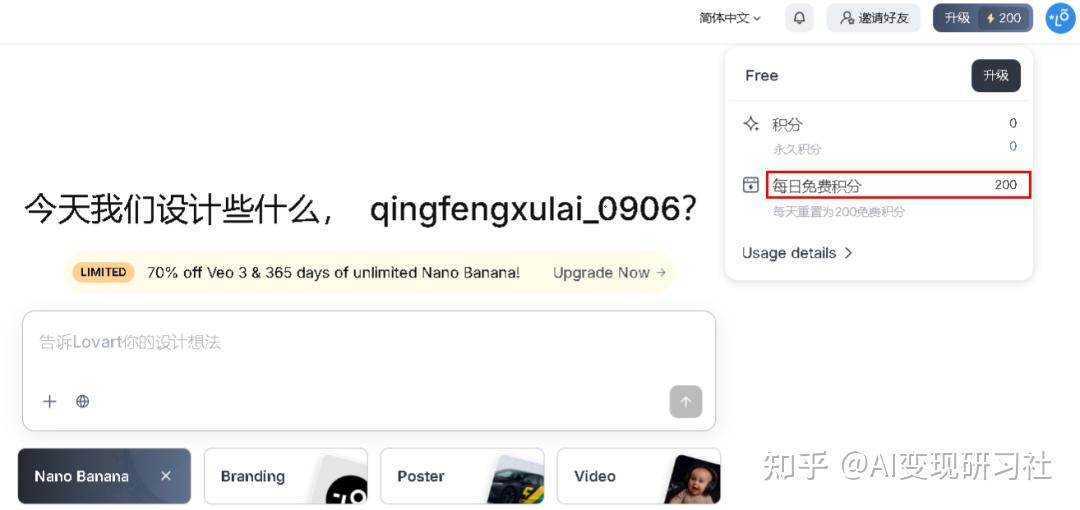 进入 Lovart 网站,下面醒目的写着“现已支持 Nano-Banana”