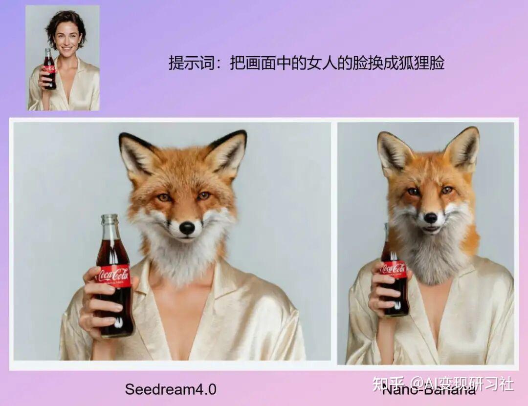 提示词:把画面中的女人的脸换成猫咪脸/狐狸脸