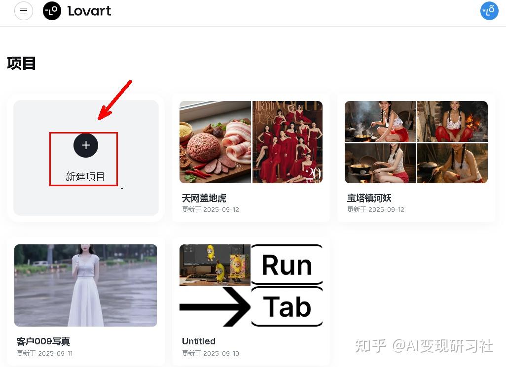 不过 Lovart 支持项目管理,点左边的项目文件夹按钮,新建一个“天王盖地虎”评测项目
