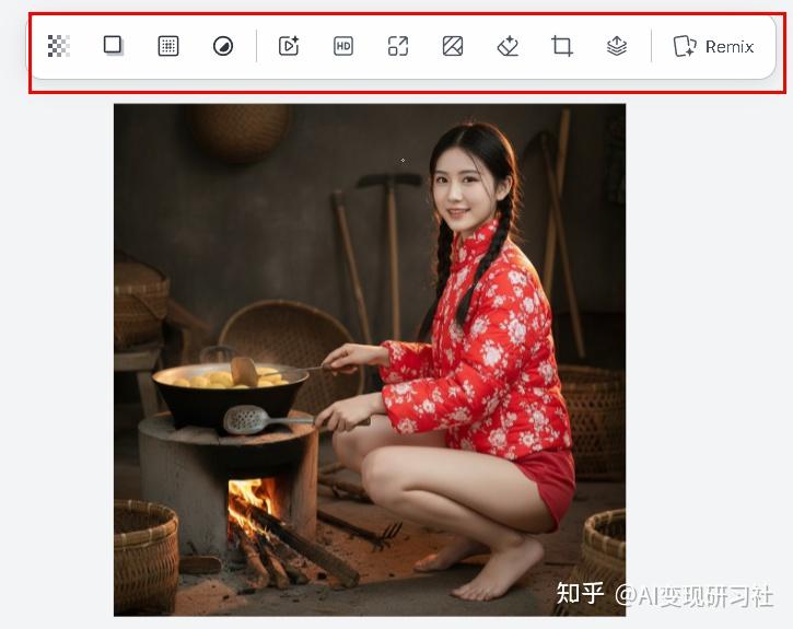 点击图片,上面会出来工具条,你可以选择对这张图进行各种编辑,包括尖锐、提高分辨率、生视频啥的,这里就不赘述了