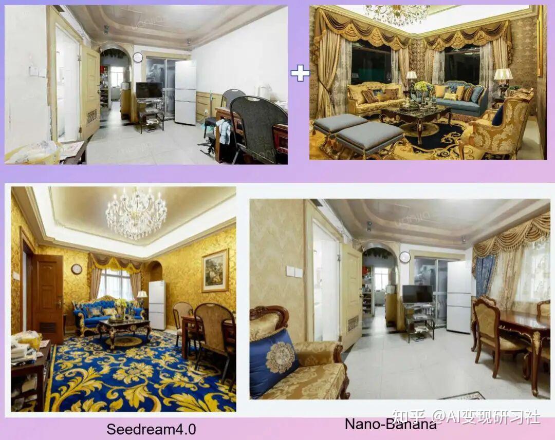 都完成得不好,Nano-Banana 就换了桌子和沙发,而即梦 4 没有遵守原来的户型结构
