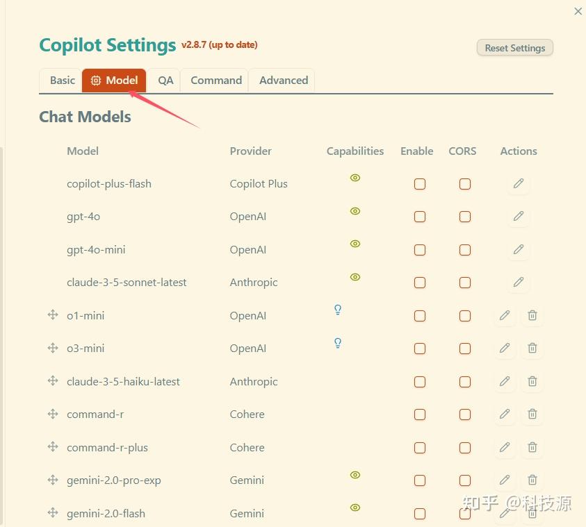 打开 Obsidian-copilot 设置 选择 model