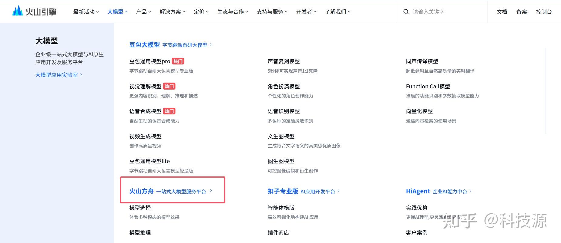 进入大模型-火山方舟-控制台