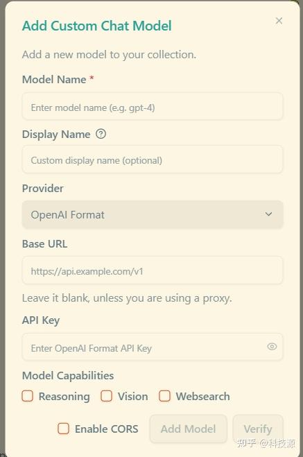 在 Chat Model 下面点击 add custom model 按钮