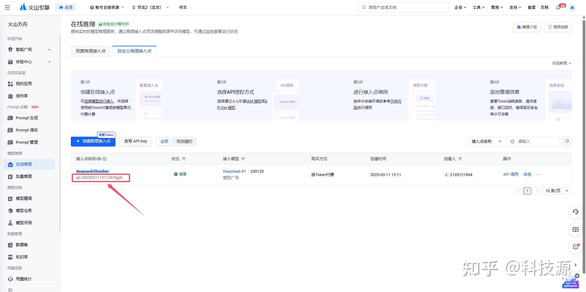 火山方舟-控制台-在线推理-自定义推理接入点