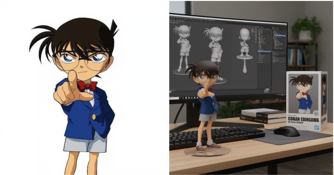 正好,我最近在和队友在恶补《名侦探柯南》,所以拿柯南来试一下生成 3D 手办效果。