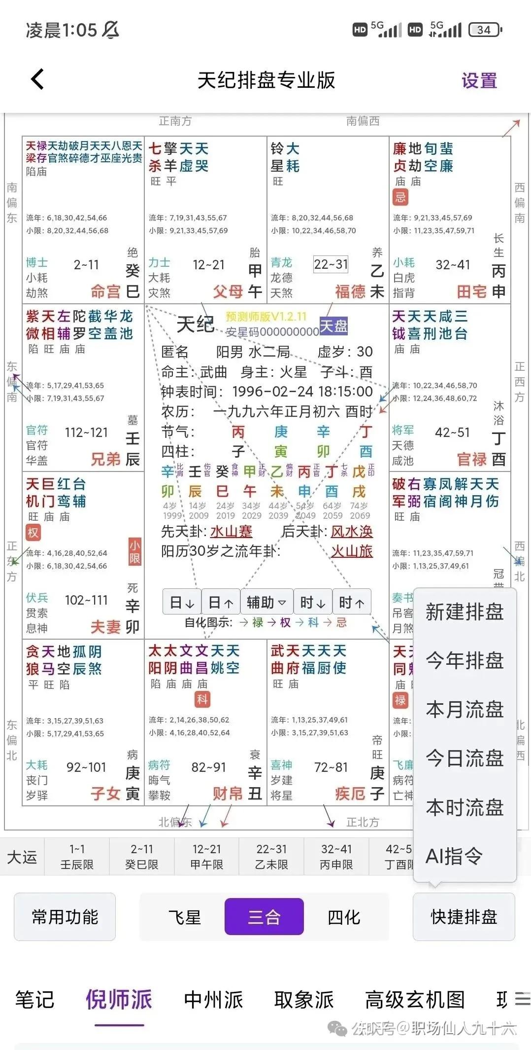 ①排盘工具网址:天纪排盘 https://app2.zwds001.com/(建议用这个)