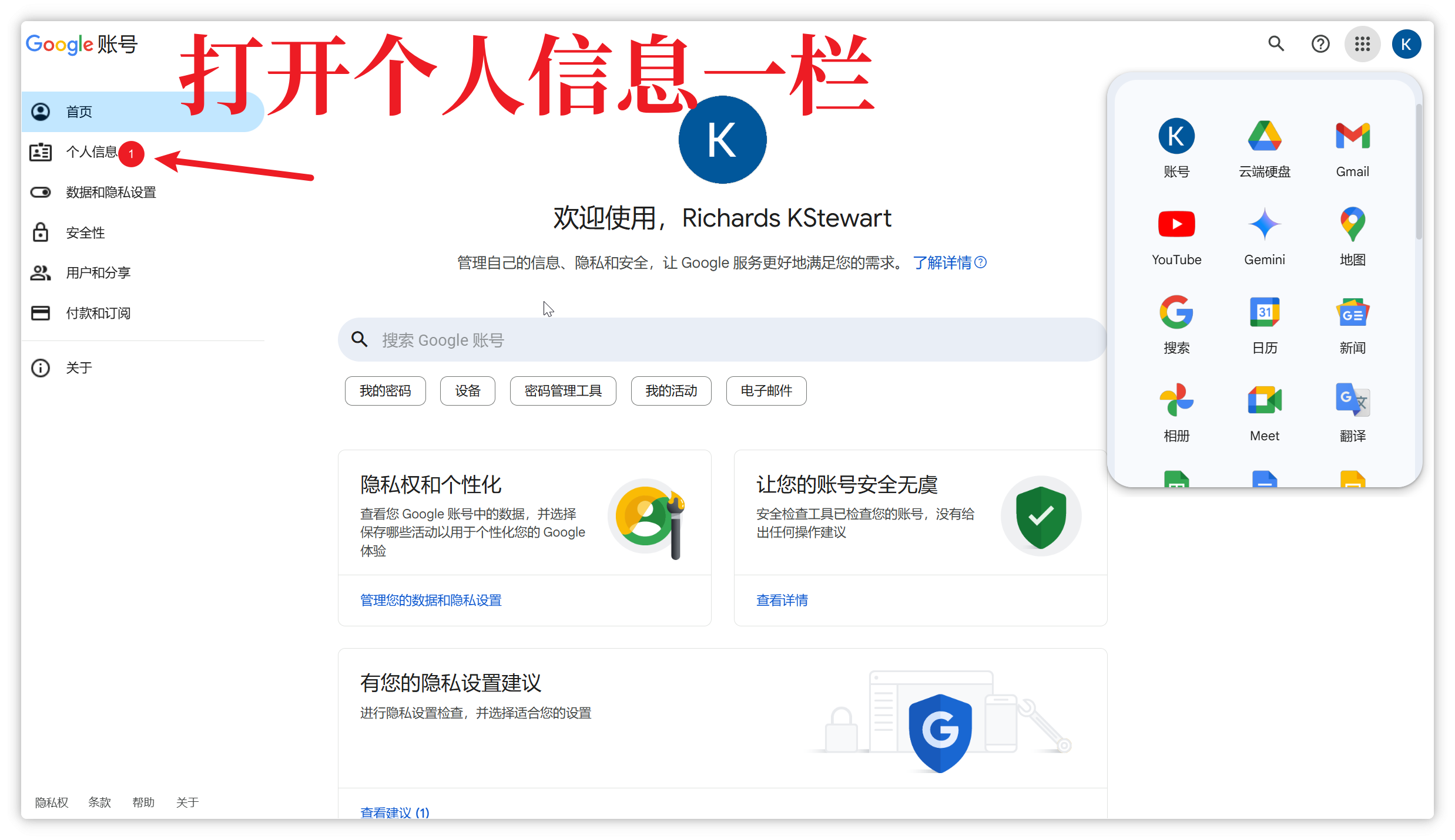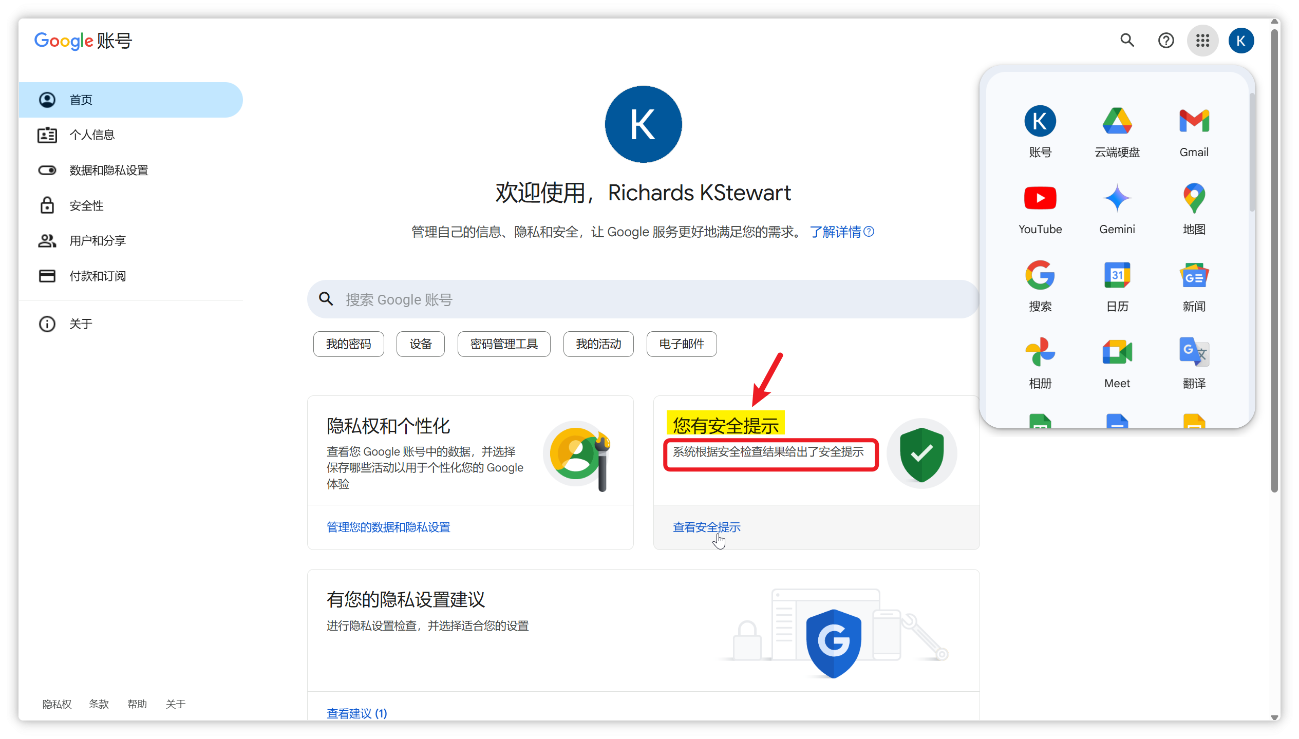 看到谷歌这两个安全提示,一个是添加辅助电话号码,一个是设置地址。