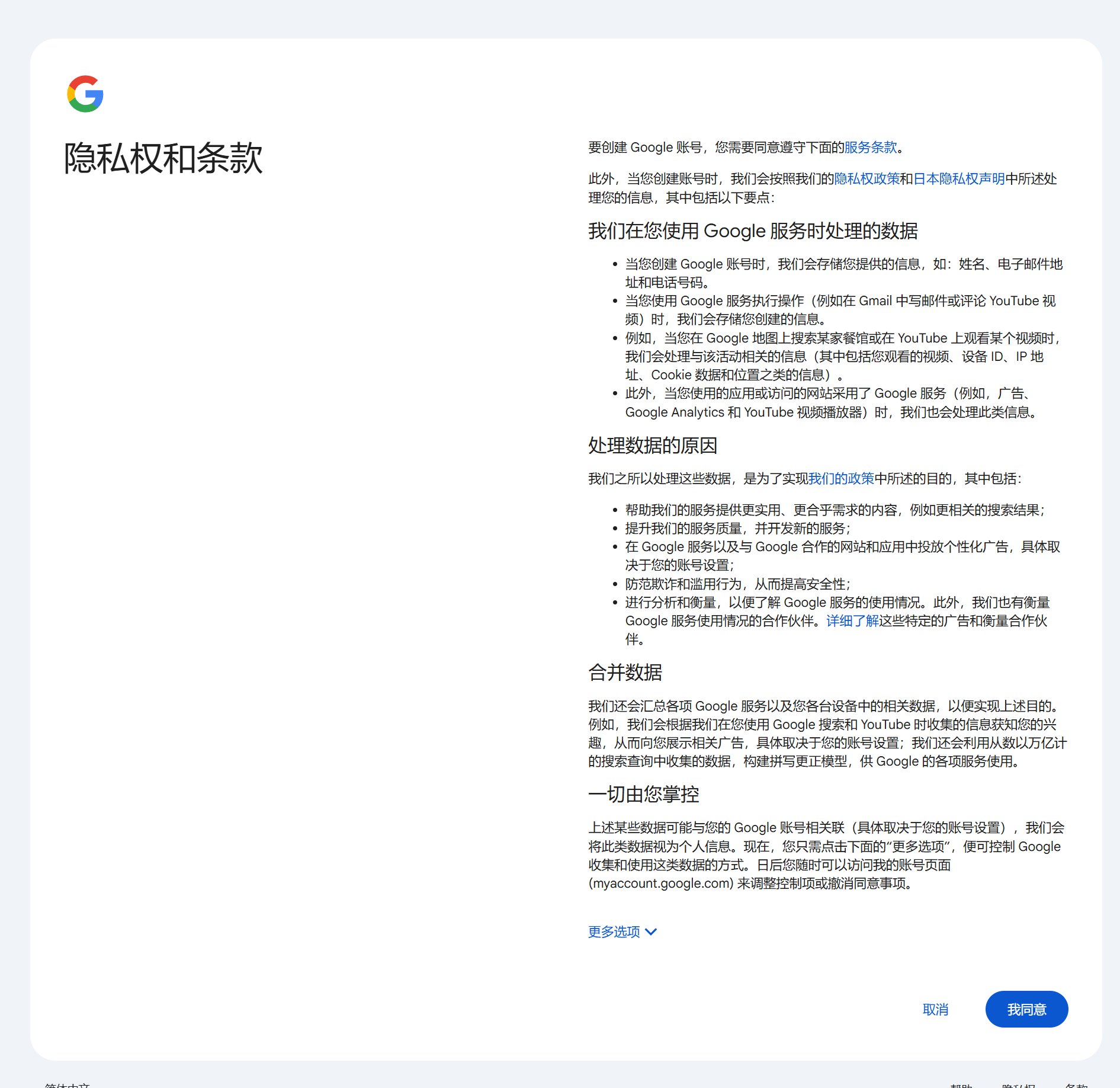 下一步同意协议条款后,即可创建完成谷歌账户了。