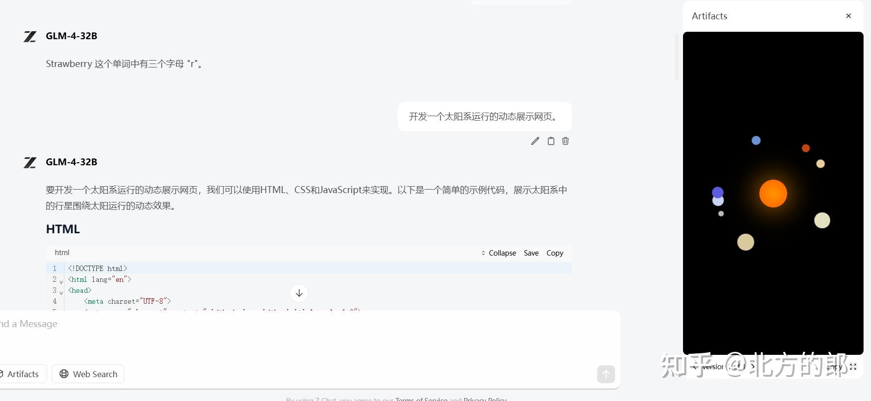 GLM-4-32B-0414 在工程代码、Artifacts 生成、函数调用、搜索问答及报告等方面都取得了不错的效果,部分 Benchmark 甚至可以媲美更大规模的 GPT-4o、DeepSeek-V3-0324(671B)等模型。