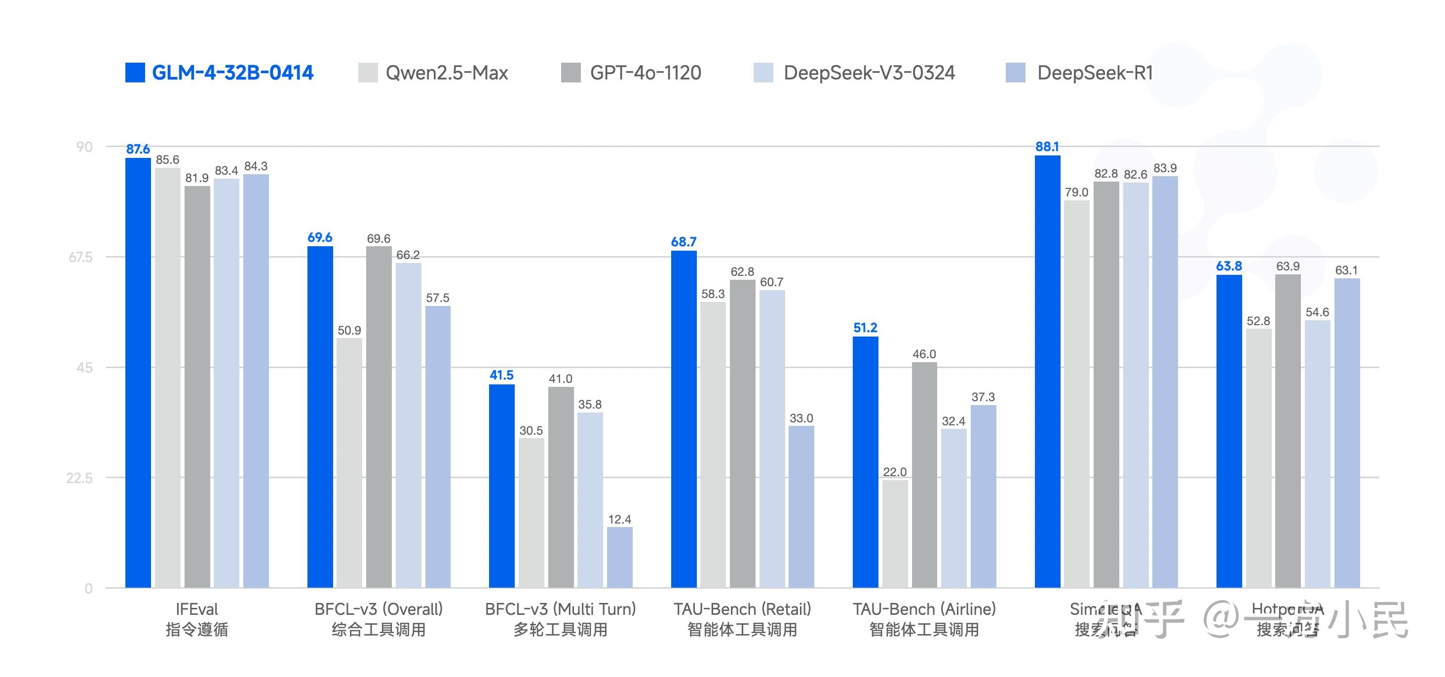 GLM-4-32B在多项基准测试中表现亮眼,超越GPT-4o和Deepseek-v3: