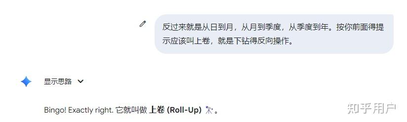 这个从“月份”看到“具体日期”的操作,就像用放大镜看数据一样。你觉得反过来的操作应该叫什么?比如,我们看完了每天的数据,想把它们汇总起来看“整个月份”的总数据。