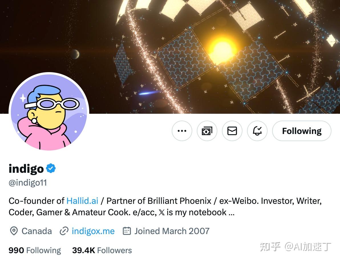indigo,中文名芦义,是新浪微博创始团队成员,在微博创业阶段担任产品和技术负责人。同时也是 Hallid.ai 联合创始人,Brilliant Phoenix 合伙人。 他从 2016 年起,便涉足创业投资和早期投资孵化领域。他所在团队投资了 OpenAI、Anthropic、Cohere、X.AI 等知名 AI 独角兽公司。是极少数还在持续分享自己的认知、洞察甚至投资建议的低调大佬。