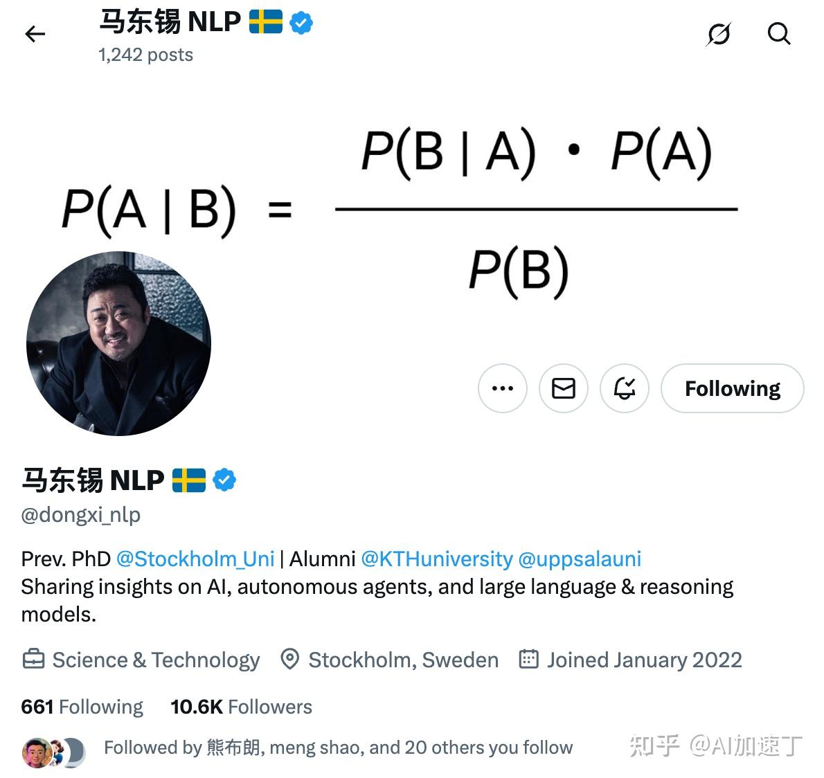 马东锡NLP, 曾于斯德哥尔摩大学获得博士学位,KTH皇家理工学院和乌普萨拉大学校友,分享关于人工智能、自主代理以及大型语言与推理模型的见解。