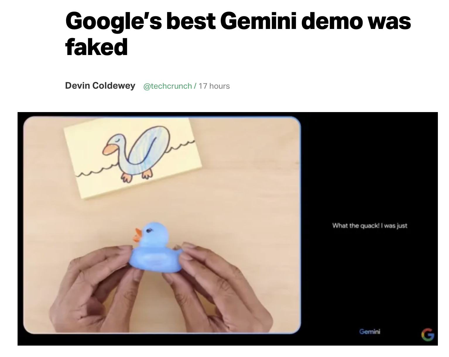 最新消息:唯一看起来还可以的视频demo,今天被谷歌直接承认是“仅供参考”。