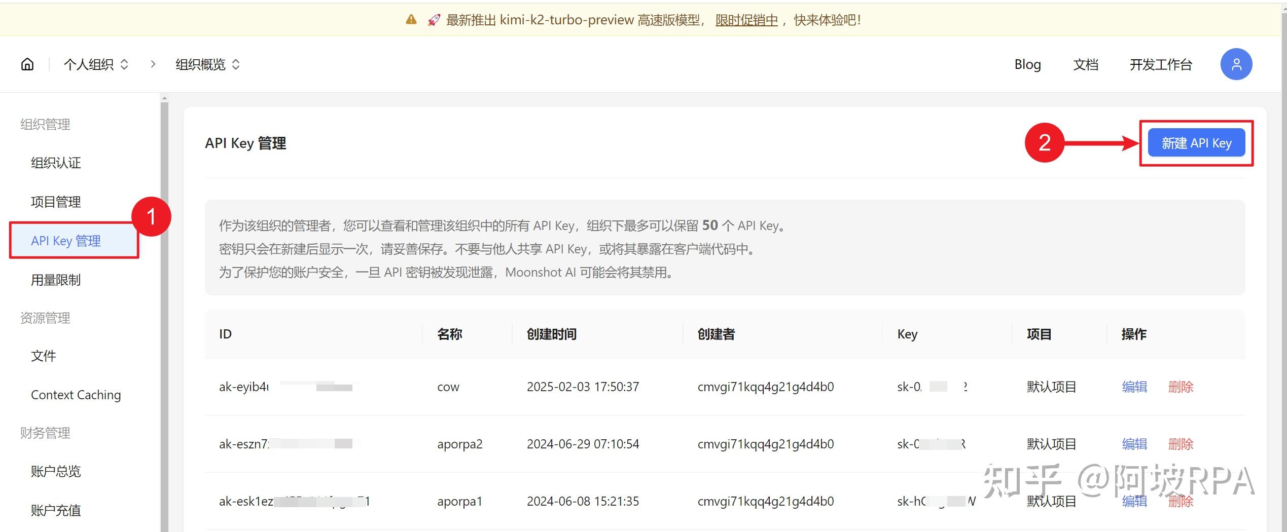 进入API KEY管理页面:https://platform.moonshot.cn/console/api-keys