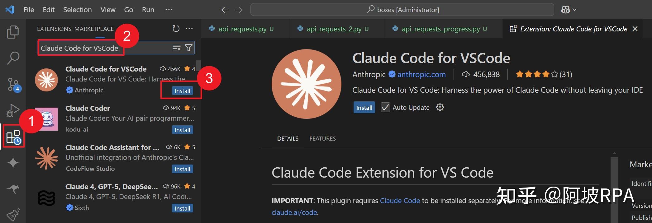 在Vscode的插件市场搜索“Claude Code for VSCode”并点击 install 进行安装
