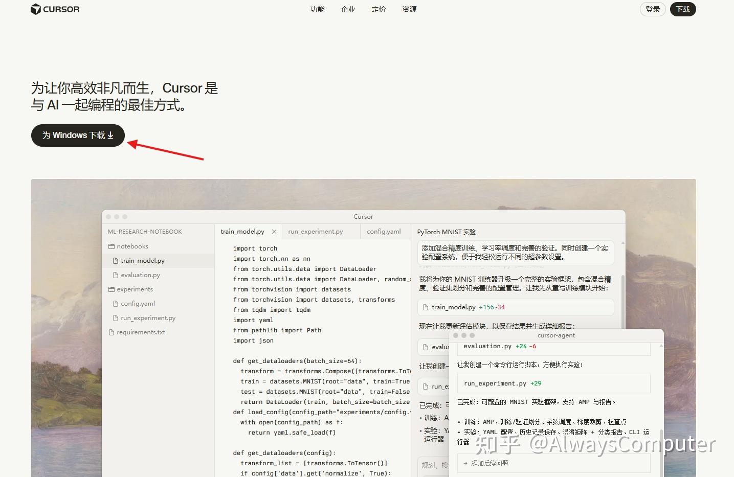 Cursor官网(强烈建议直接访问官网,这是最安全、最及时获取最新版本的渠道。)