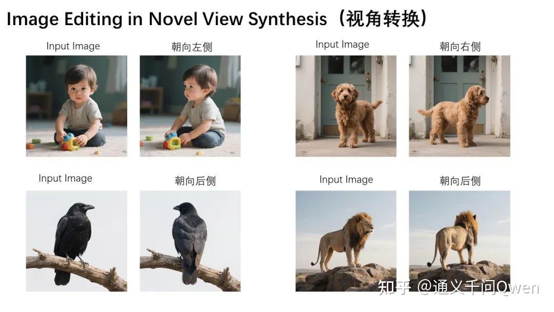此外,视角转换同样是语义编辑中的一个重要应用场景。如下方两张示例图所示,Qwen-Image-Edit不仅能够实现物体的90度旋转,还可以完成180度旋转,让我们直接看到物体的背面: