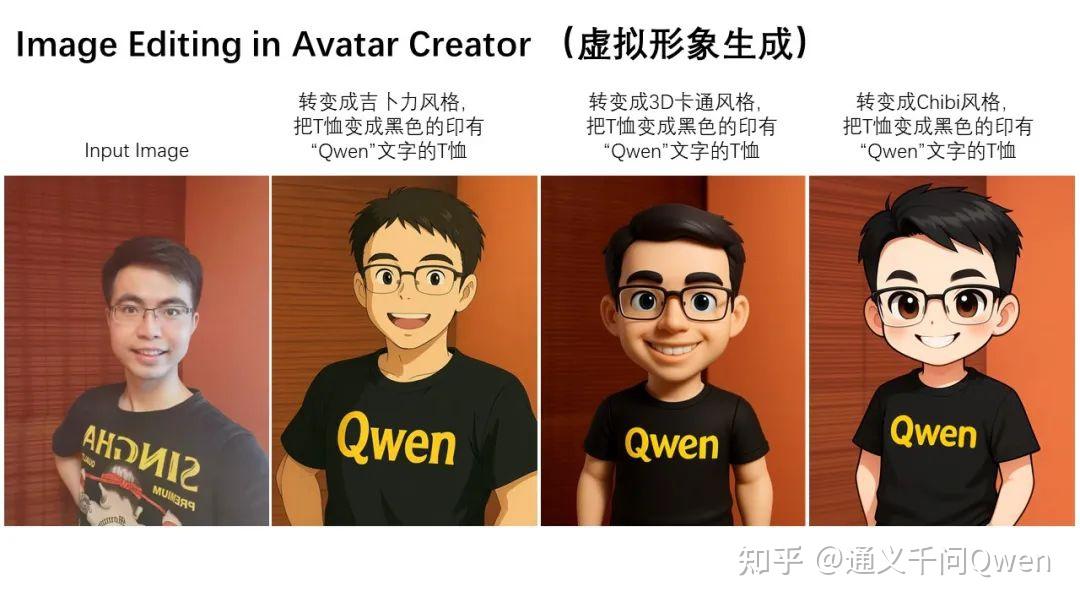 语义编辑的另一个典型应用是风格迁移。例如,输入一张人物头像,Qwen-Image-Edit可以轻松将其转换为吉卜力等多种风格,这在虚拟形象创作等场景中极具价值: