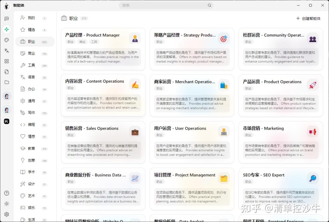 在Cherry Studio中,直接内置了各行各业的上千个智能体: