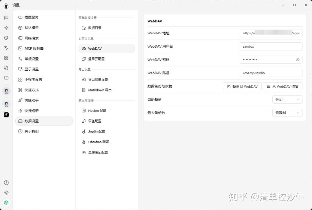 但是,Cherry Studio提供了自定义同步和丰富的导出功能——