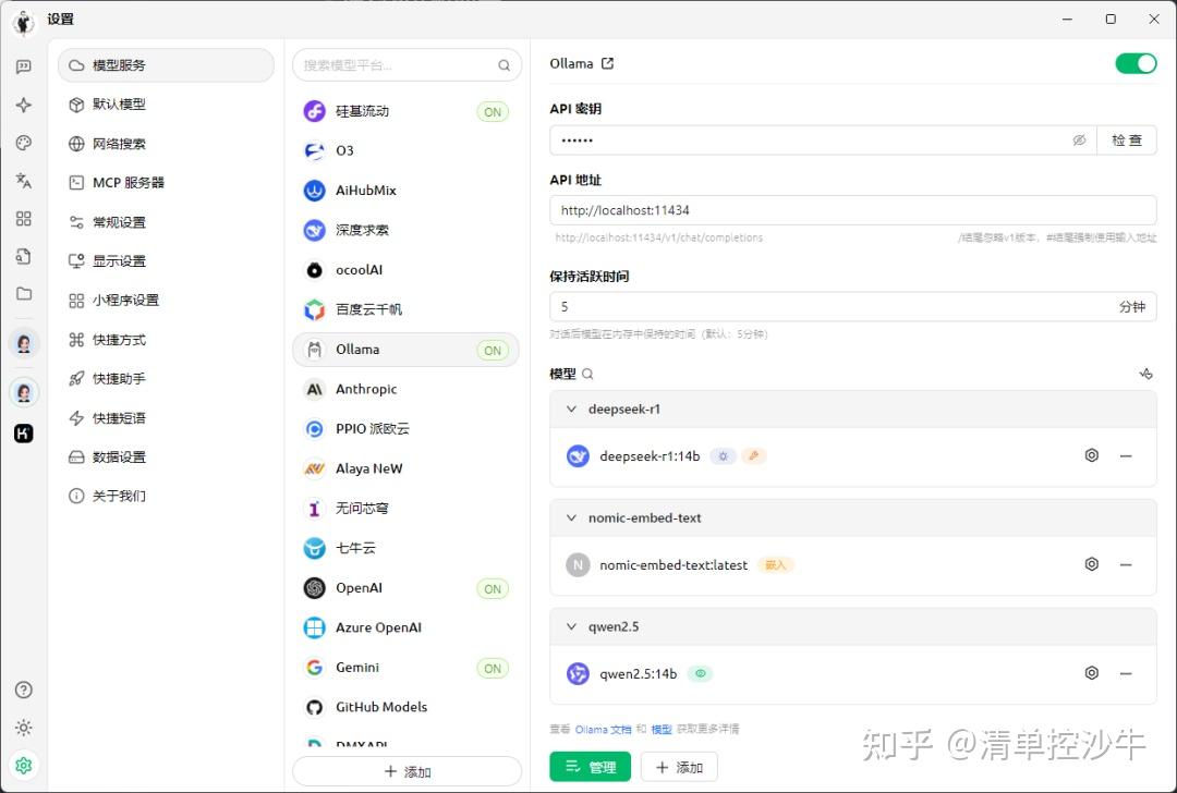 另外,我也配置了本地化的Ollama,用来读取自己的知识库——