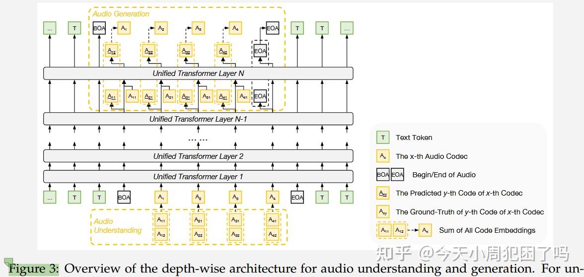 - 音频生成:利用“下一编解码预测”(Next-Codec Prediction, NCP)来捕捉时间及频谱结构。