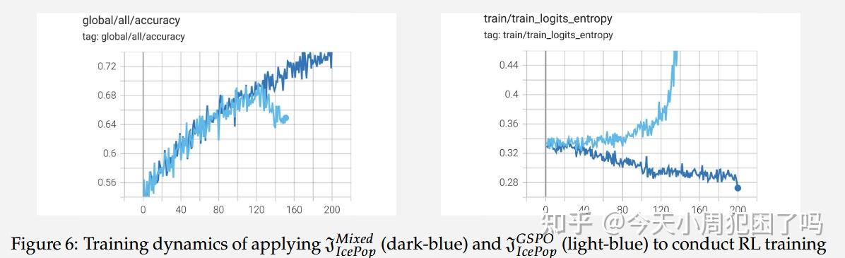 注:其核心更改在于,相当于引入了IcePop在GRPO上的操作,如果单个token差异太离谱,那就忽略这个token的梯度。