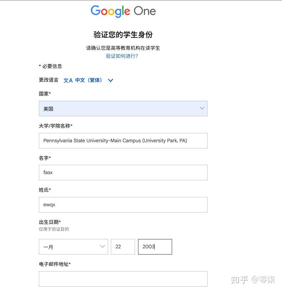 会跳转到下面页面,如果有美国学生邮箱,国家选美国,大学填Pennsylvania State University或者同类大学,选图中的学院即可。(这里确保你的IP在美国),名字姓氏随便填。出生年月写2002-2004之间,日期随便。电子邮件填你的Google邮箱(就是目前登录的邮箱账号),如果没有邮箱或者不会弄的可以看这里神奇的传送门,搞不定也可以评论区留言。