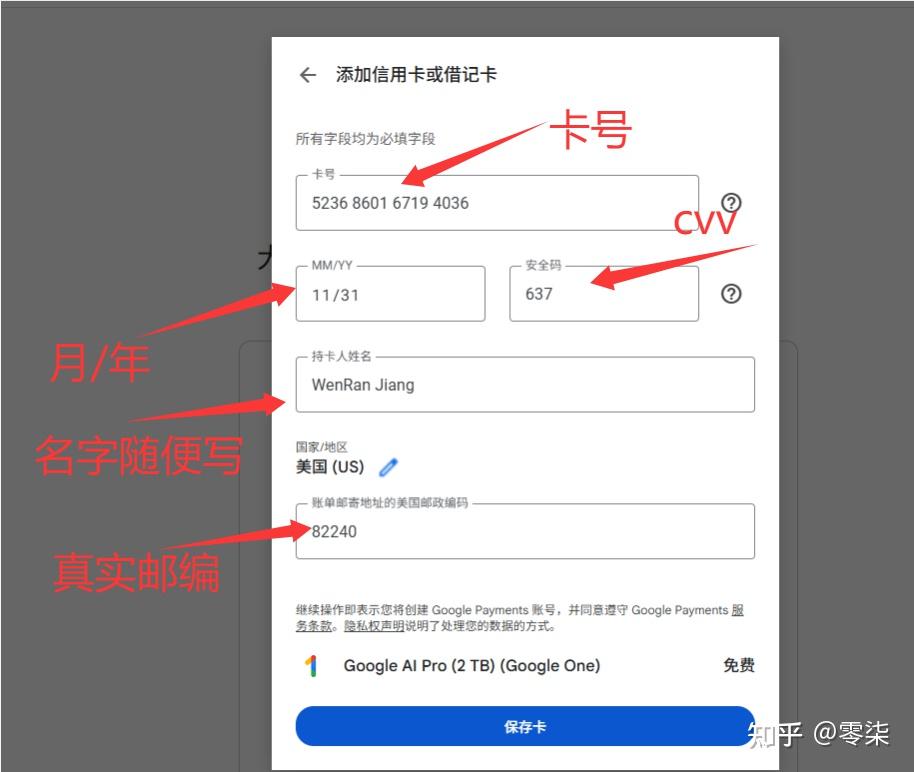 然后按照下图填信息(下图是模拟数据,有卡的话按照你自己的真实信息填) 没有的话,制卡成本较高。试试有人代订阅的,还是比较划算。如何获取点击传送,或者私信留言我帮你解决。搞完之后你就拥有价值240U的gemini 3.0 Pro账户了。