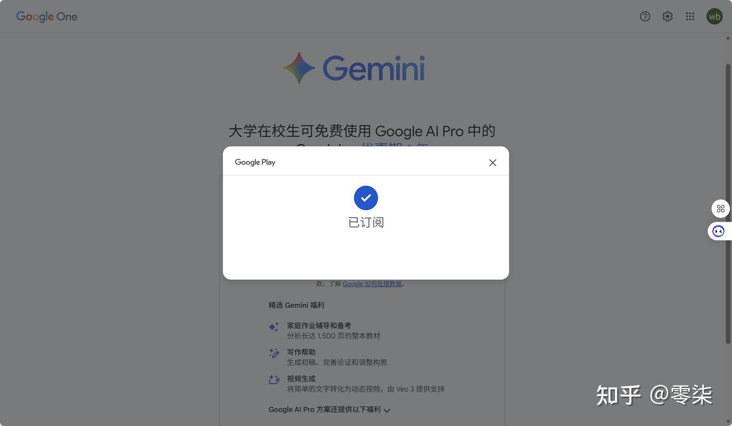 如果是这个页面代表账号是有资格的,如果没有资格就不用看教程了,可以点击这里神奇的传送门或者私信我帮助获取,或者自己搞一个新号。 有资格的可以进行学生身份验证然后免费订阅Gemini Pro
