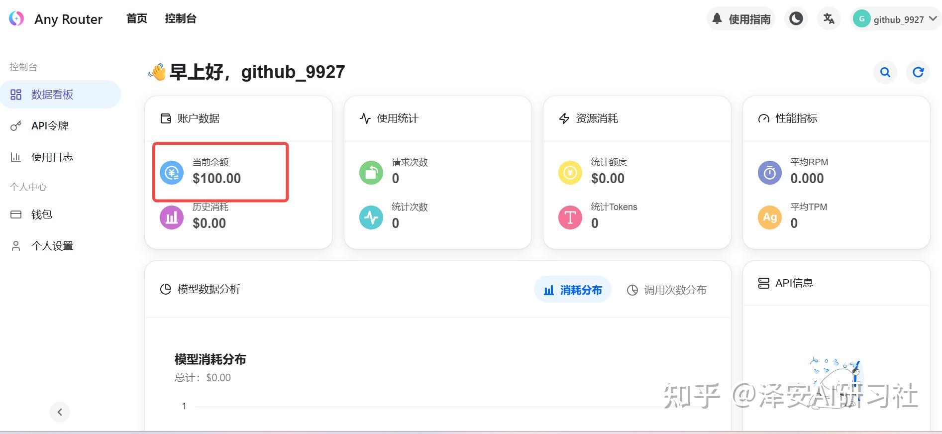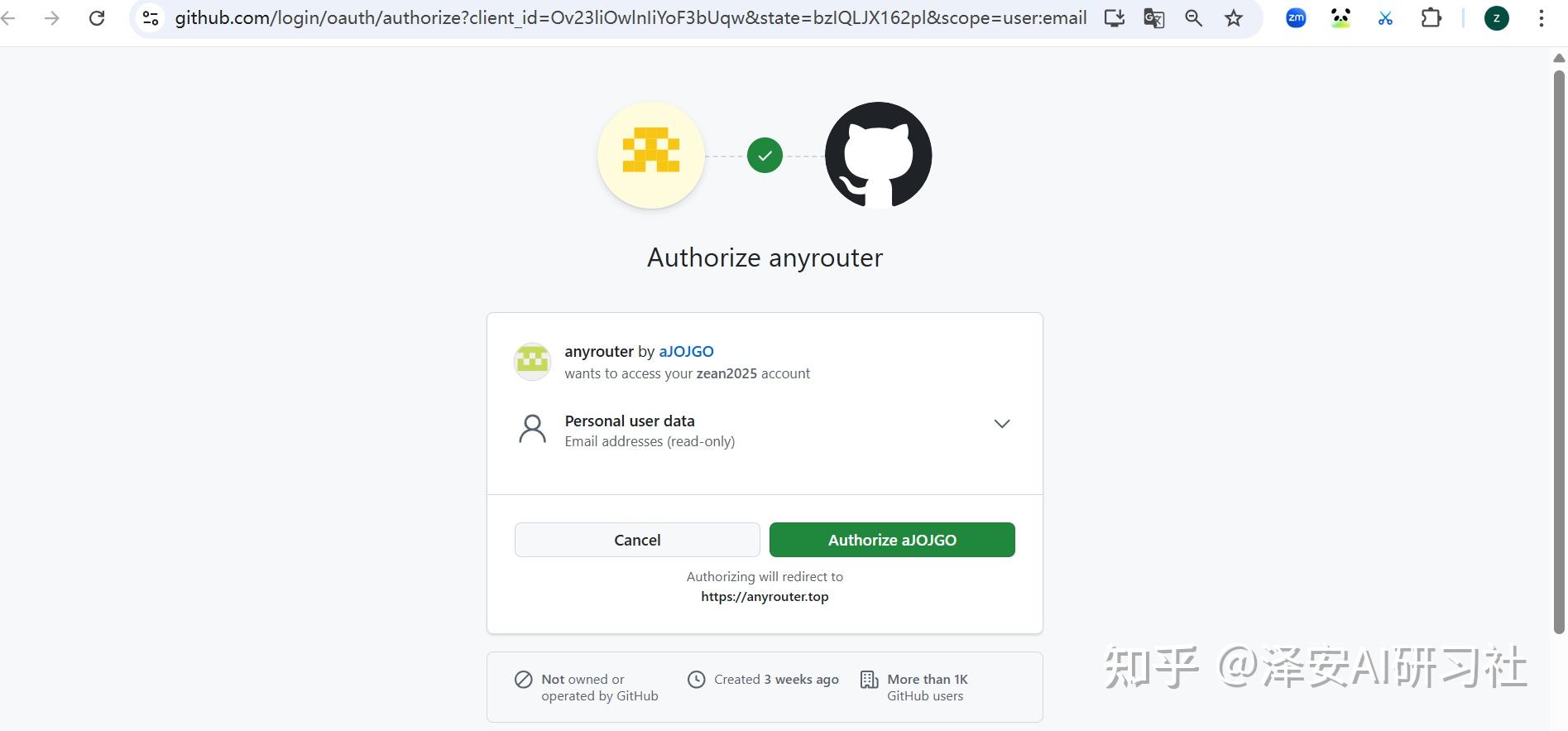 通过 Github 账号授权认证 anyrouter 进行注册。