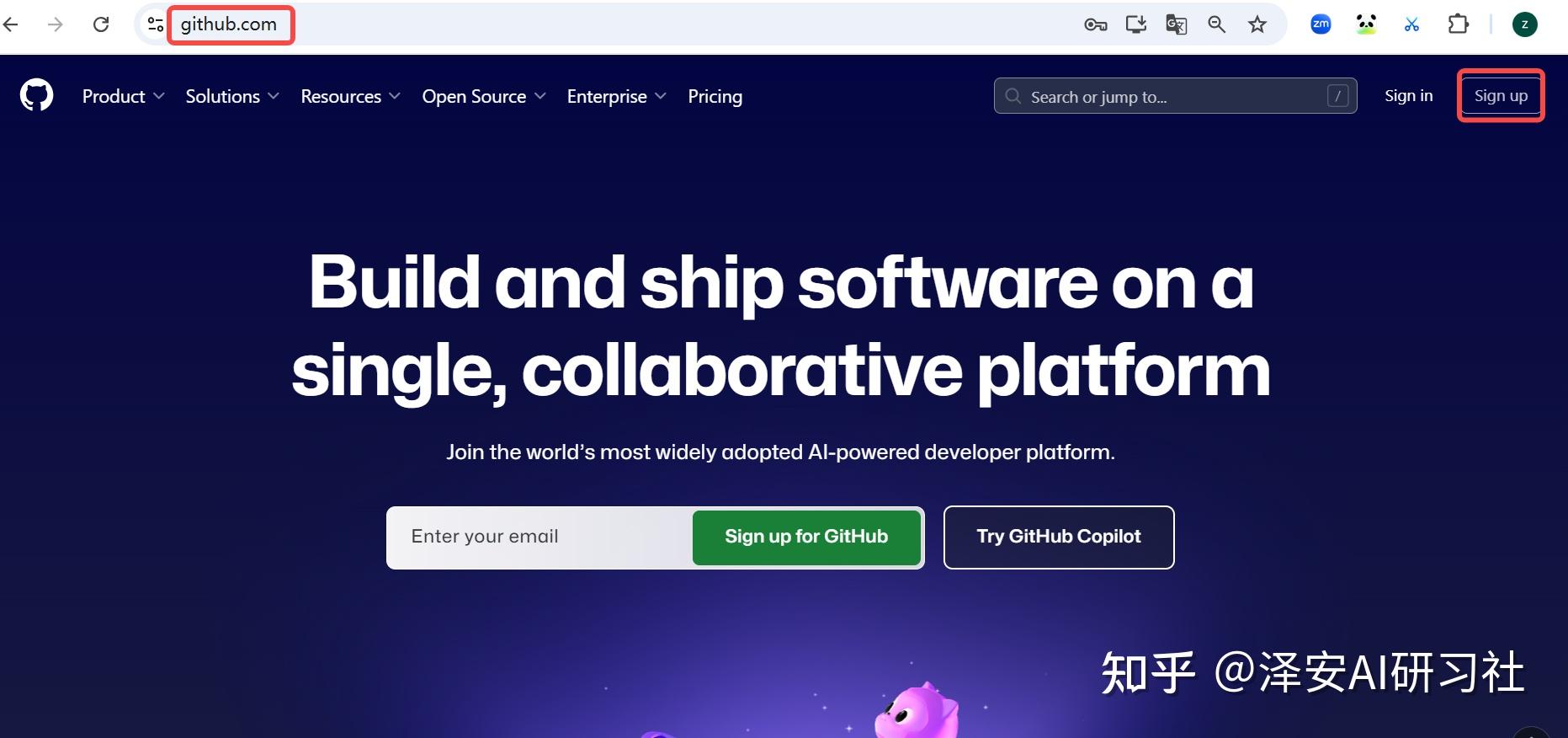 打开 http://github.com , 点击 sign up 按钮
