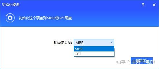 2. 根据硬盘的容量选择“MBR”或“GPT”(建议GPT),单击“确定”。