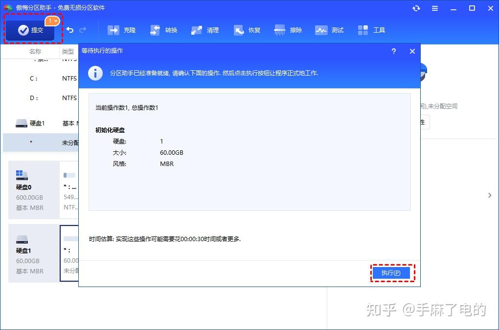 3. 返回主界面后先点击主界面左上角的“提交”,然后“执行”。